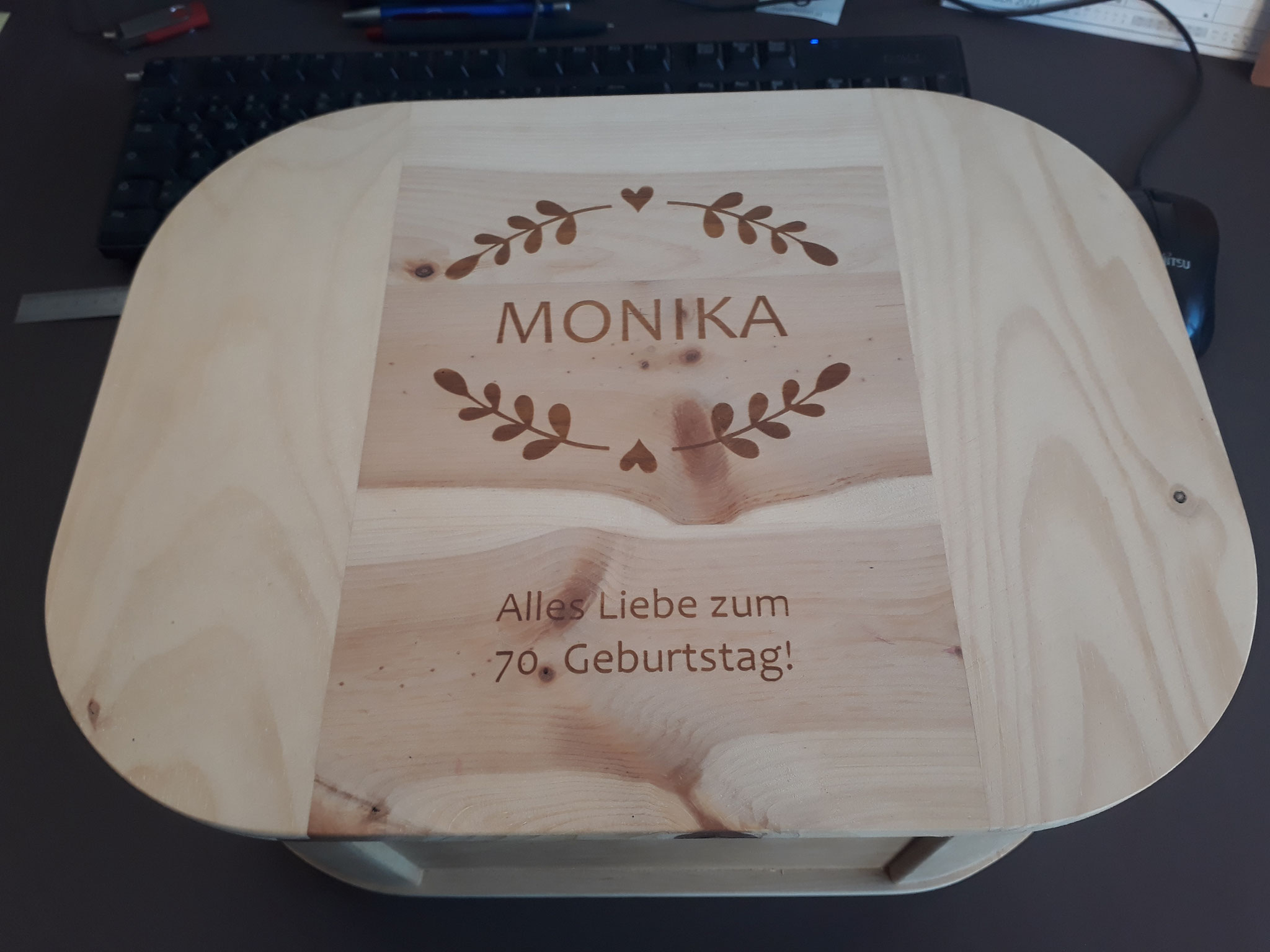 Egal ob Holz, Metall, Glas, Leder, Acryl, Textilien. . . Wir gravieren mit unserem neuen Laser Q400 Ihre Einzelstücke mit Ihrem individuellen Text und beschriften auch Serien zum Beispiel mit Ihrem Firmenlogo. Holz und Acryl bis zu 8 mm Stärke können wir auch schneiden.