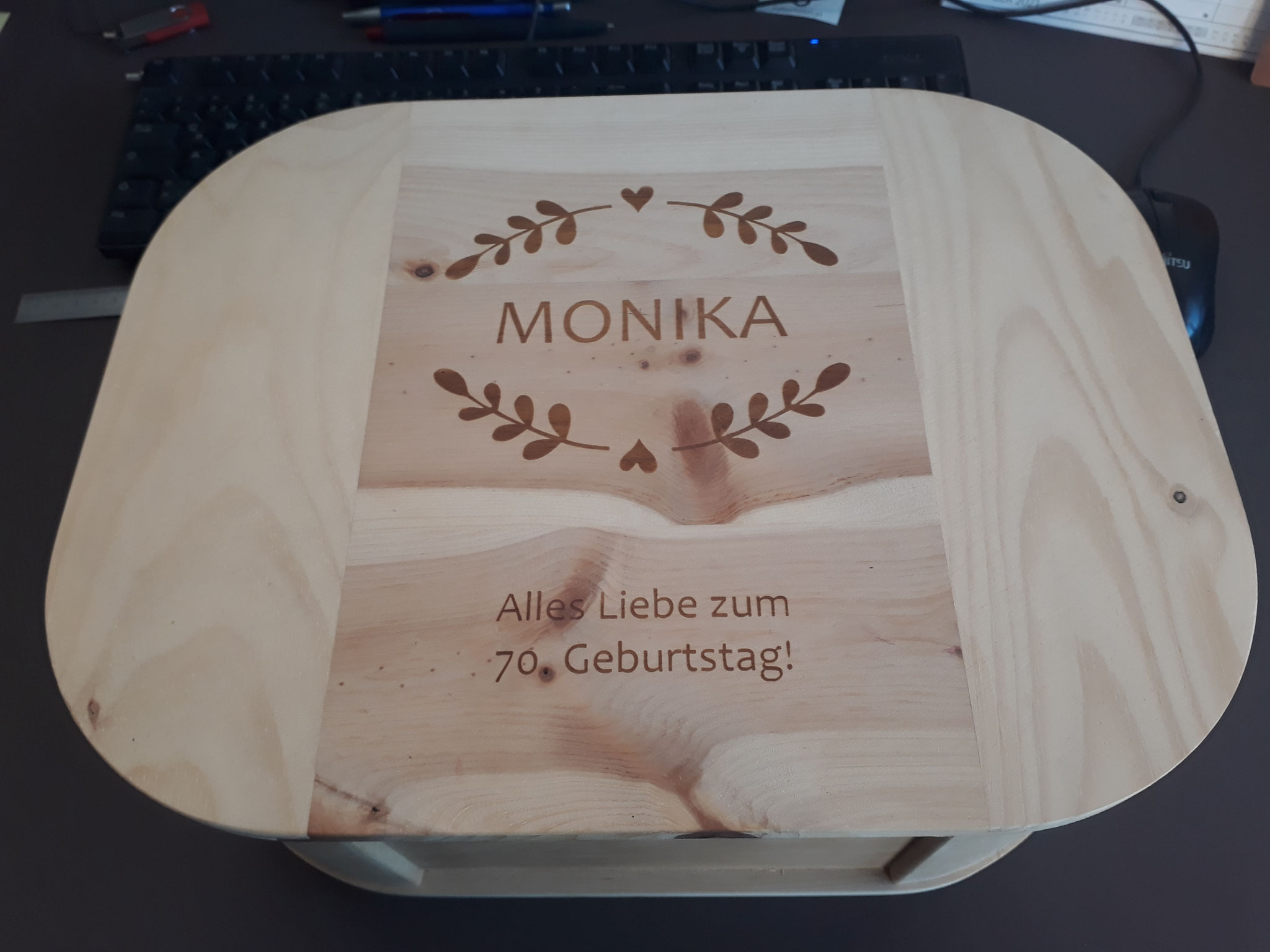Egal ob Holz, Metall, Glas, Leder, Acryl, Textilien... Wir bringen Ihre Ideen zum Leuchten! Mit modernster Lasertechnologie gravieren wir verschiedenste Materialien individuell und detailgenau. Unsere großzügige Arbeitsfläche von 1000 x 600 mm ermöglicht auch größere Projekte und dank Rundgravur sind selbst zylindrische Objekte kein Problem. Zusätzlich schneiden wir Holz und Acryl bis zu 8 mm Stärke. Ob personalisierte Geschenke, kreative Einzelstücke oder auch Serien - bei uns wird jedes Projekt mit Leidenschaft und höchster Präzision umgesetzt.